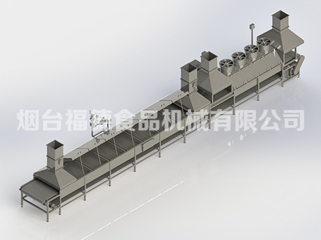1、本产品采用高温蒸汽将食品进行蒸煮,从而达到食品加工工艺要求,蒸煮后可对食品进行简单的冷却,便于后续速冻以及包装;